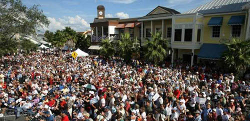 spoke to 200,000 people waving AMERICAN flags
