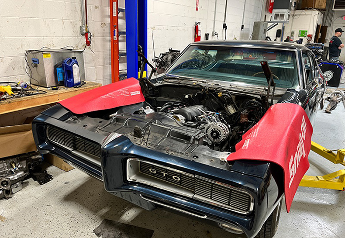 There were three cars in the shop that day, including a beautiful 1968 Pontiac GTO that was having major work done. (You can see Lonna in the background talking with Kenny.)