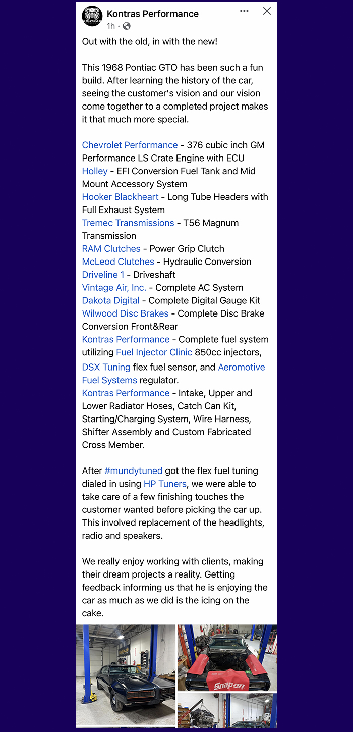Kontras Performance is now in its fourth year and doing very well. Still lots of long hours, but some of the projects they've taken on are not what you might think. True, they still do work on new and newer cars, but once in a while, a real gem is brought in.