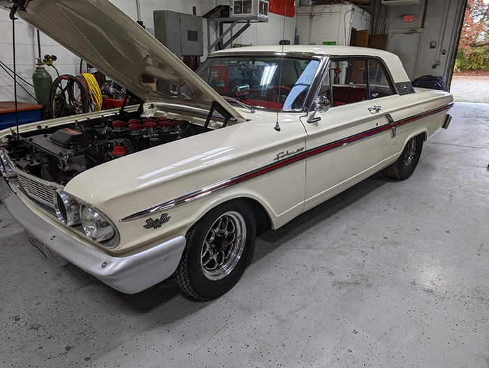 This year, Kenny had the opportunity to work on a very rare 1964 Ford Fairlane Thunderbolt. These were experimental cars. Only 100 were made - 49 with 4-speed manual transmissions and 51 with automatic transmissions. Today, these cars sell for an average of $162,664 in good condition. This particular one is in great condition! The owner has it insured for $300,000.