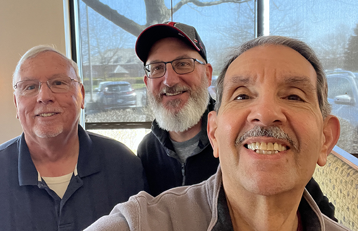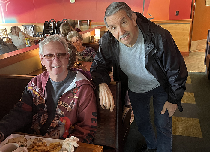 I had the opportunity to visit the shop in November. Kenny was changing the top portion of my stage keyboard stand, which required removing welds, cutting tubing, and then re-welding the parts in their new location. It had to be precise, or the top keyboard would not sit level on the stand. Needless to say, he did an excellent job. While I was there, Kirk and I caught up on family and friends. And of course, we needed a good selfie!