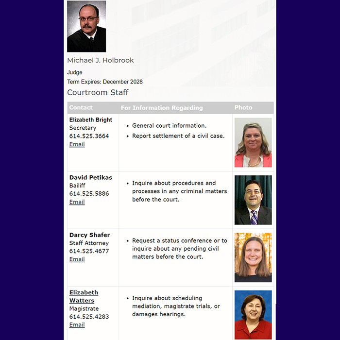 My brother David is the bailiff for Judge Michael Holbrook and will probably maintain his position until the judge retires, which could very well be at the conclusion of his term in 2028.