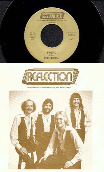 In October & November, "Reflection" went into the studio for the first time. We recorded two songs for a 45 rpm single. Both were original tunes. The 'A' side was "Friend" and the 'B' side was "Headed Home". The record was out in October and we started selling copies at our engagements. |