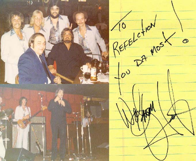A few months later, we were surprised by Wolfman Jack in Cincinnati. He ended up getting on stage with us and singing (I use the term very loosely) "Stormy Monday Blues". |