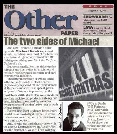 "It's About Time!" is a 19 year old composition that I wrote on the road. It's been labeled "uplifting", "fun" and very danceable. (I wouldn't know about the dancing part because I have two very big 'left' feet.) The prelude was an addition to the song last year. The chord pattern came to me in a music store when I was messing around in their keyboard section. The end of the piece (which is over 10 minutes long) was also an addition that I wrote in 2000. The chord pattern used in "Prelude" is also the same chord pattern used in the brass finale at the end of the song. |